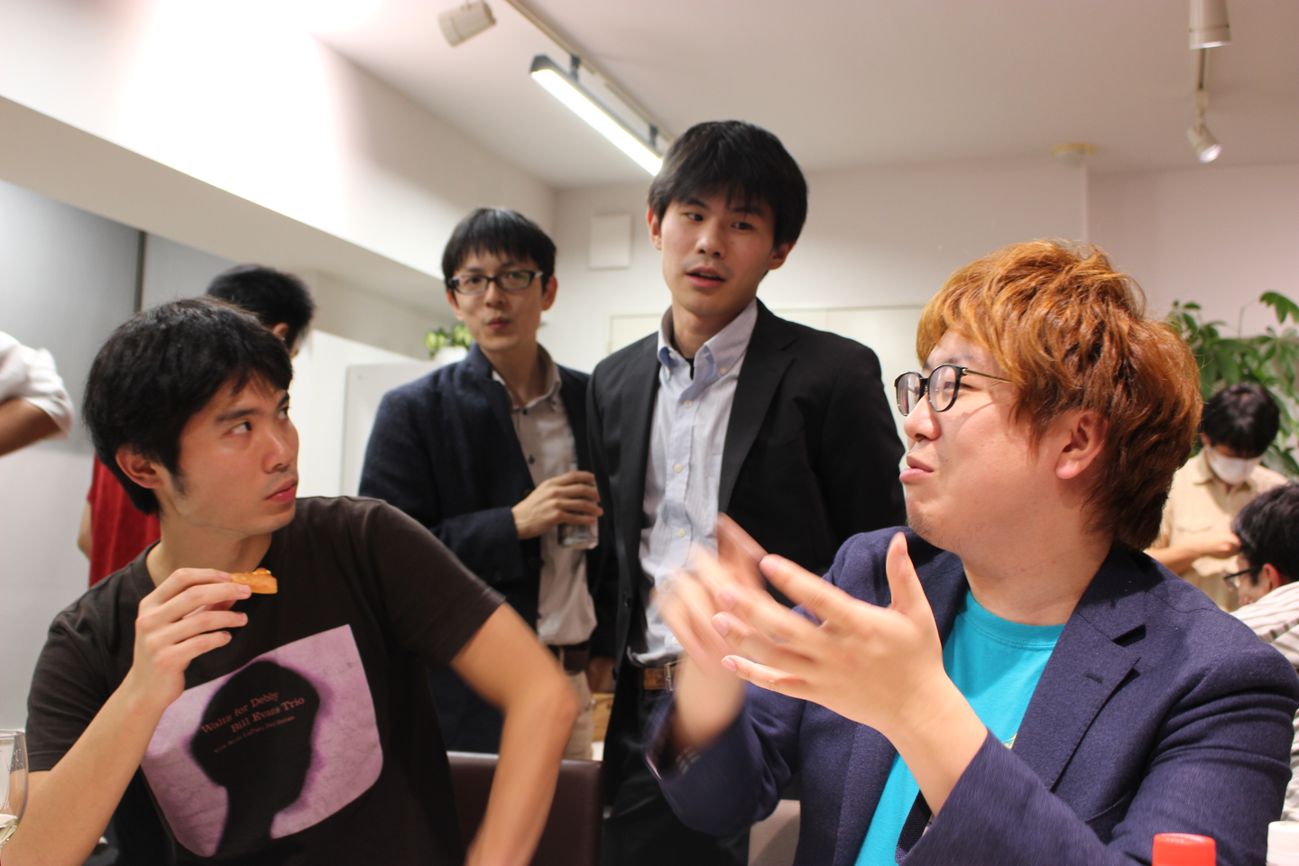 トークショーが終わった後は、お酒とピザを交えた祝勝会タイムに突入します!