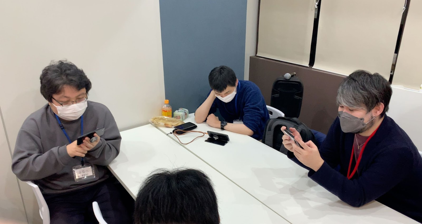 みなさんスマホの画面をジッと見つつ、何かを熱心に考えています。