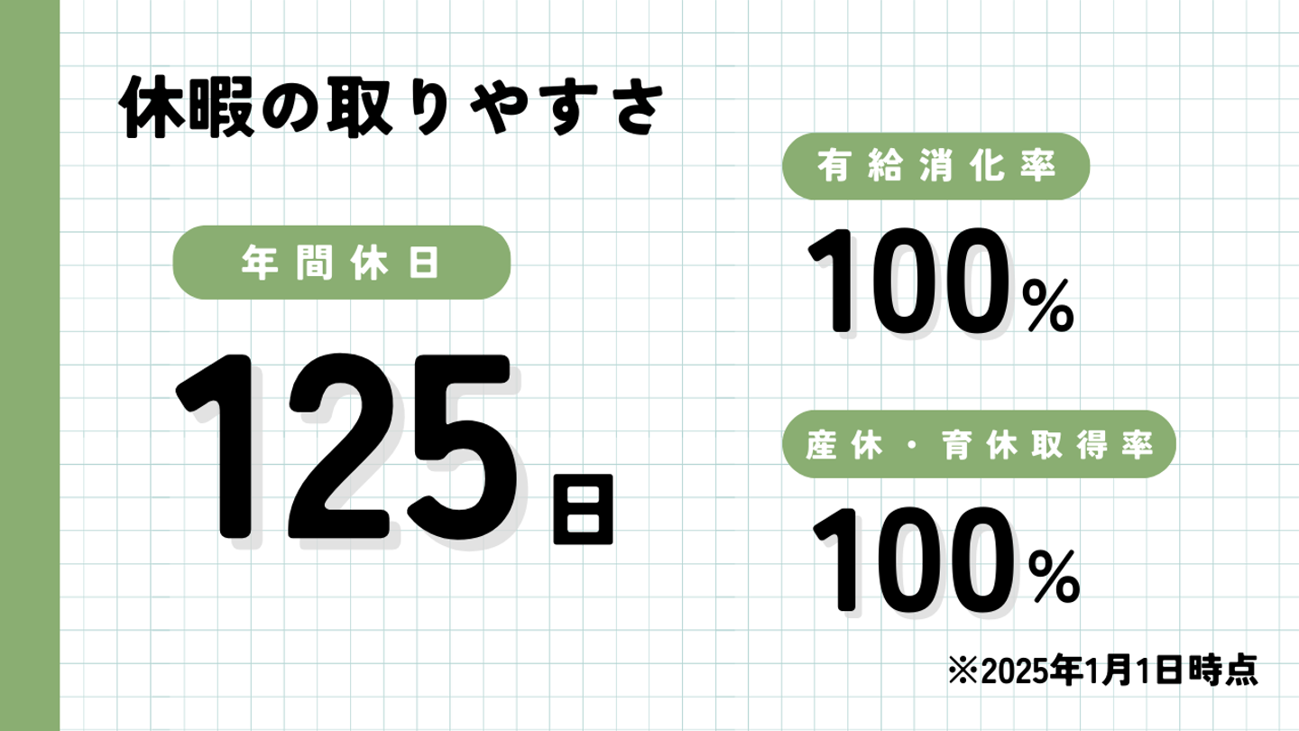 有給休暇は125日!2024年は、夏季休暇が3日間、年末年始が9日間ありました。