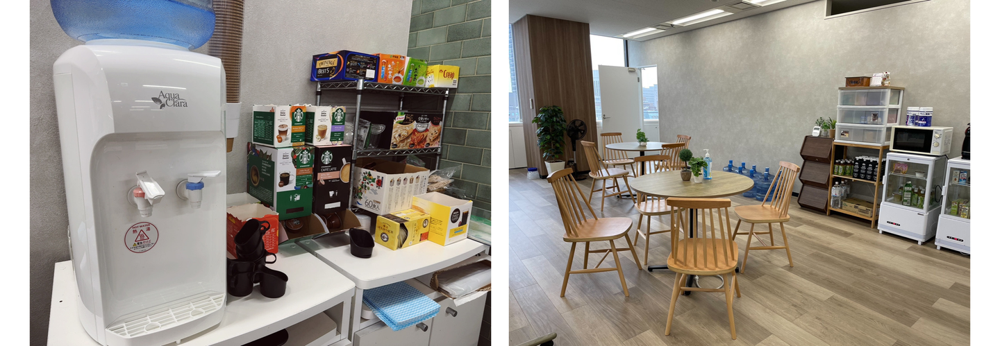 出社社員はオフィスにあるコーヒーや紅茶、ジュース、スープや味噌汁が自由に飲めます。
