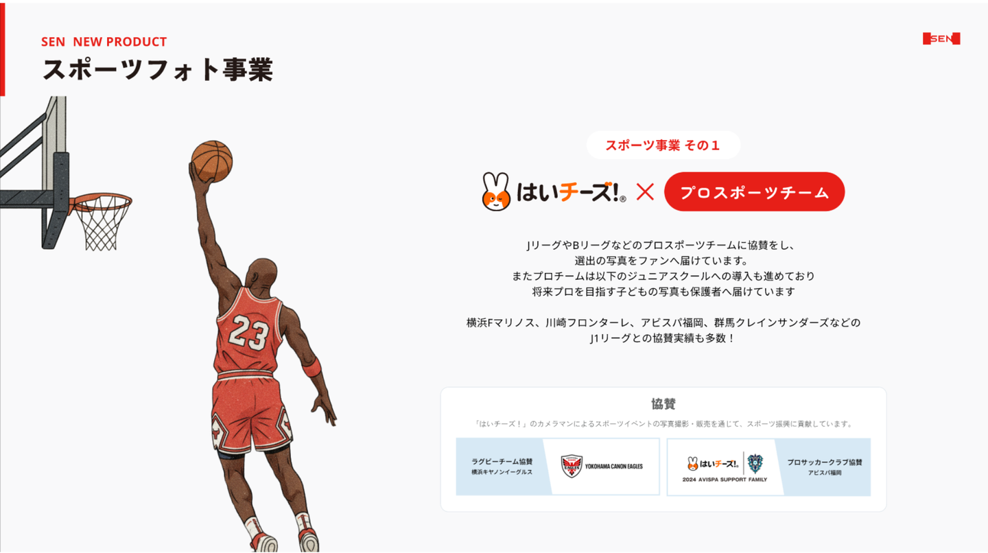 当事業は当社が保育・教育現場で培ってきた写真撮影・販売サービス「はいチーズ!」のノウハウとリソースを最大限に活かし、スポーツ・習い事領域という新たな市場を開拓する新規事業です。