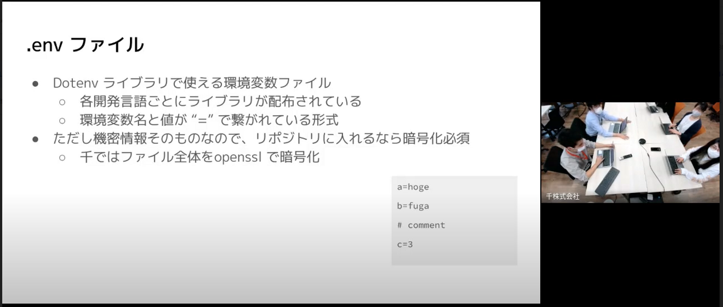 SREチームのエンジニアが発表してくれた「.env を便利に使うツールについて」なんかは、個人的には凄く実用性があっていいなと思いました。