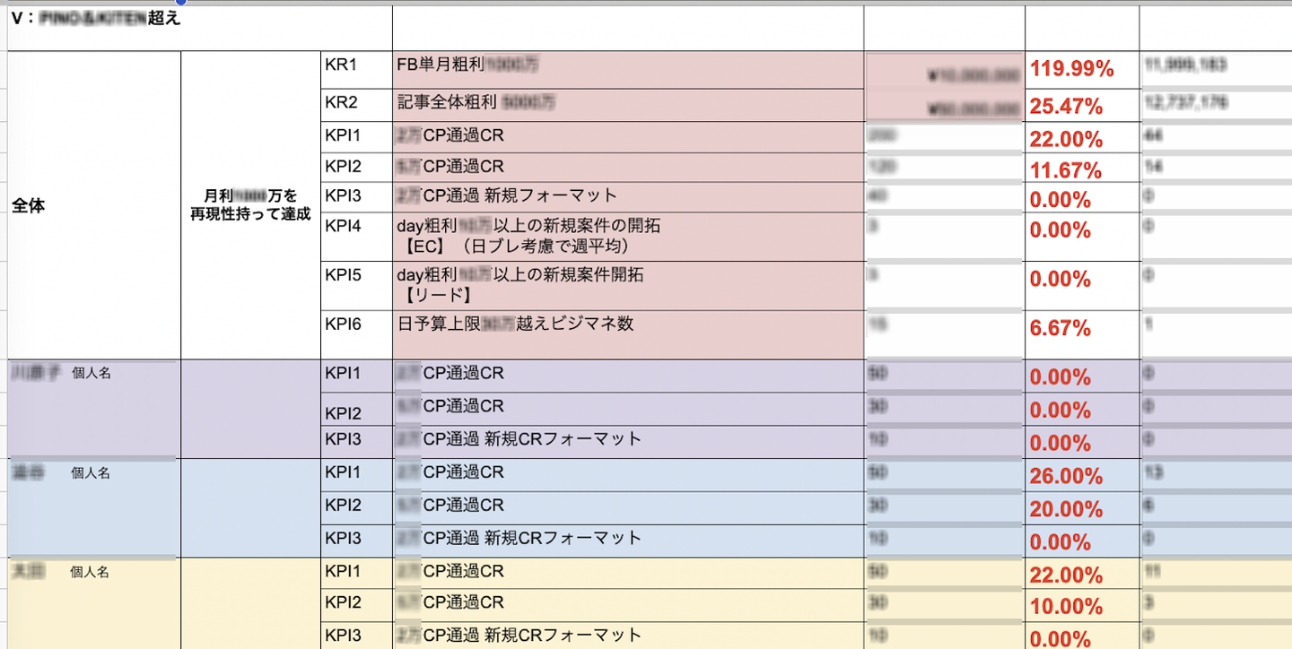 各事業部ごとにVOKRは設定されるのですが、事業部のVOKRに個人の目標(KR)を結びつけています。