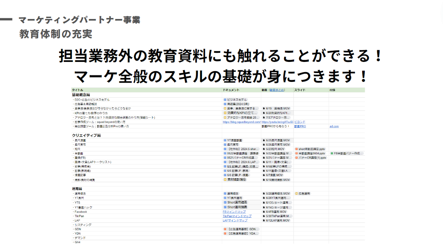 皆さんが入社した際には、必ずマーケティングパートナー事業に配属されることになります。
