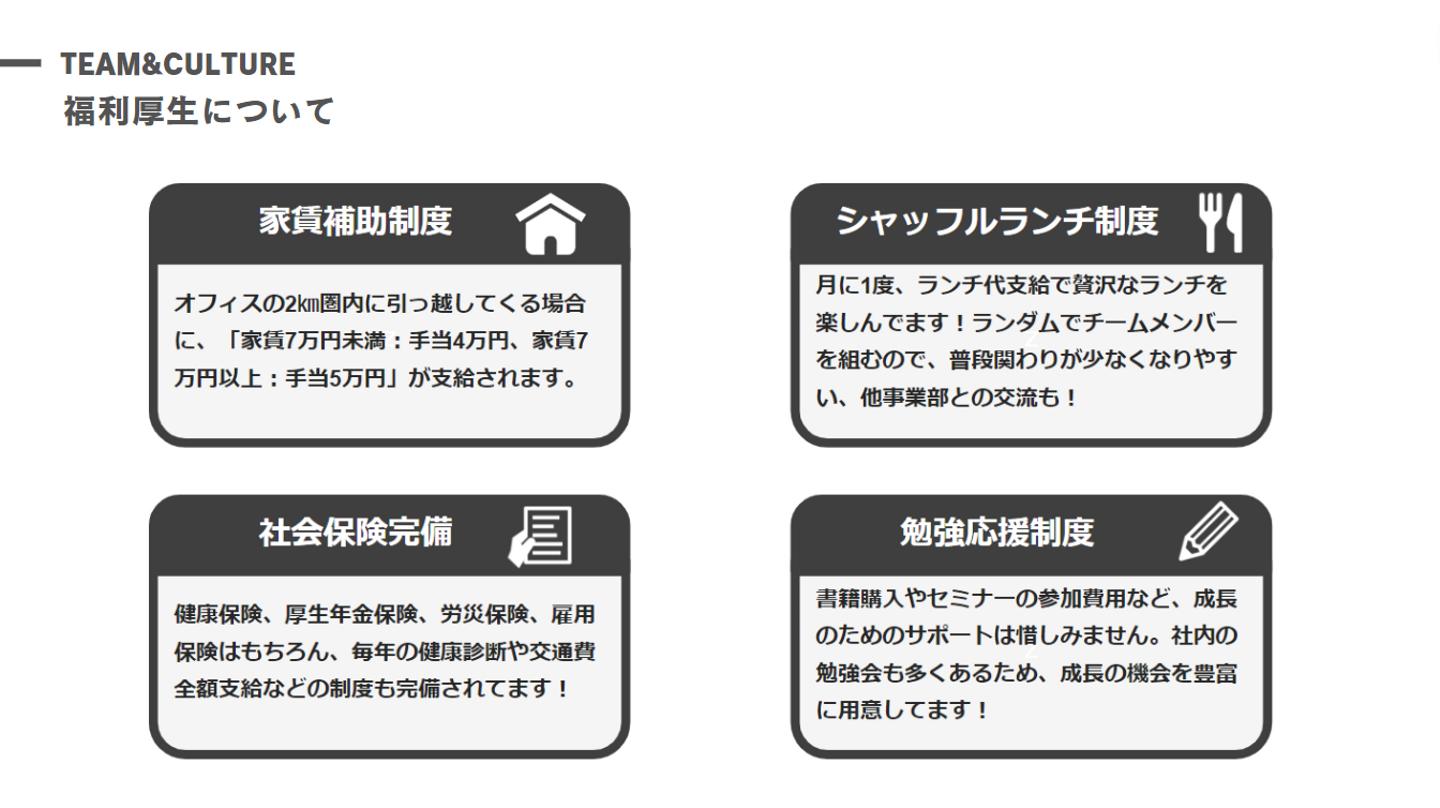 地方から上京してくるメンバーも多く、5万円の家賃補助制度はメンバーから喜ばれることが多いです