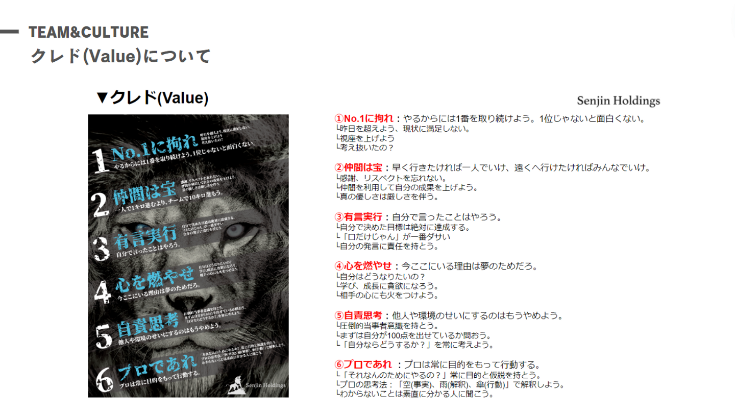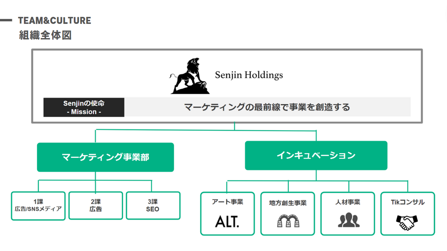 Senjin Holdingsでは、「マーケティングの最前線で事業を創造する」というミッションを掲げています。