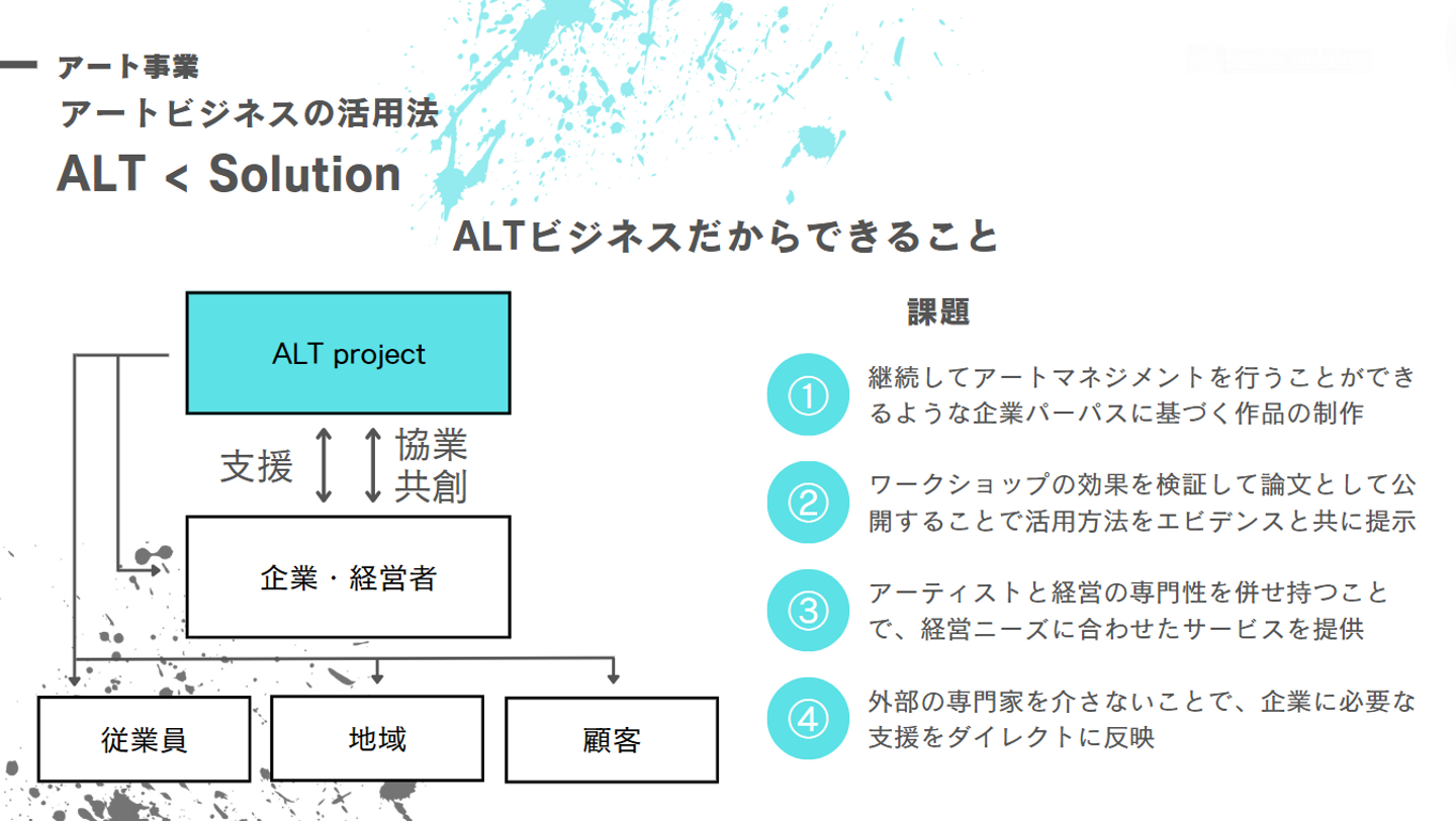 続いて、代表取締役の下山を中心に結成されたアーティスト集団「ALT」が運営するアート事業をご紹介します!