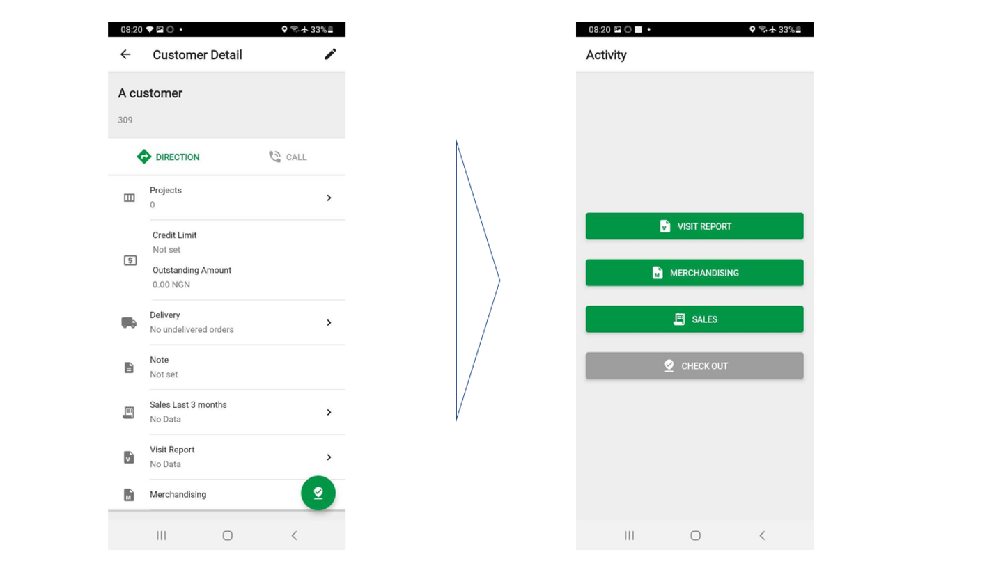 チェックインをして、Activityの中から、Record salesを選択します。