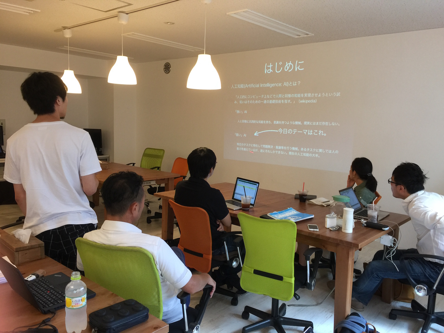 今日は、新卒一年目のAI開発研究者の鈴木くんが、「人工知能の基礎」と題して、人工知能技術に関する基礎を学ぶ講座を開いてくれました。