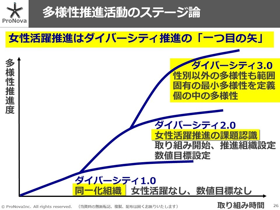 第1部の岡島さんの講演の中で、ダイバーシティ1.0、ダイバーシティ2.0・・・と、ダイバーシティの段階がいくつかあるというお話がありましたけど、我々の段階はダイバーシティ2.0の途中だと思っています。