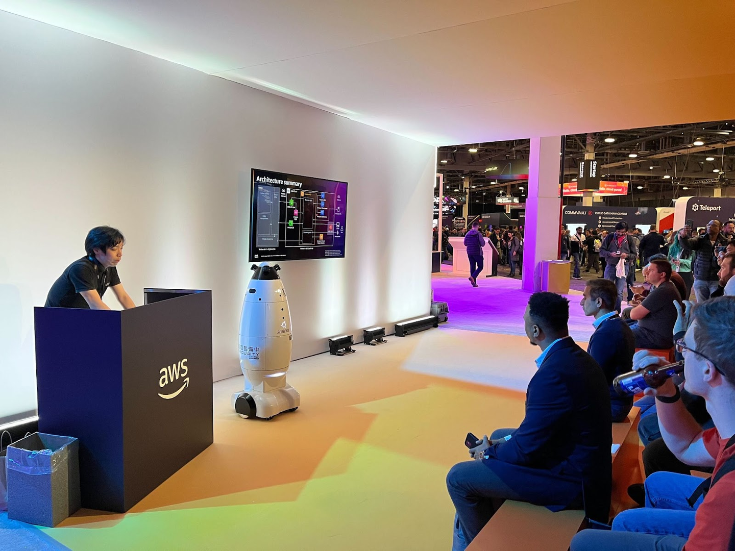 デモの内容については、実際にロボットを巡回させて、リアルタイムで映像を配信しているところやKVSに保存した録画映像を見せるなど、AWSを活用しているところを中心に説明する内容となりました。後述しますがロボットが実際にアメリカに輸送できるかどうかが直前まで確定しなかったり、輸送中に壊れてしまうなどのリスクもあり、社内オフィスにあるロボットでデモをする可能性などもあったため、デモの内容については大きく苦労しました。