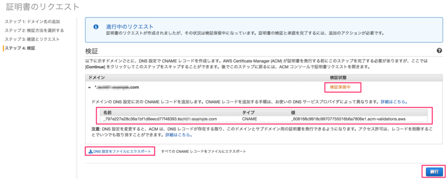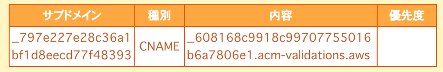 また、CNAMEレコードが表示されるので、メモしておきます。