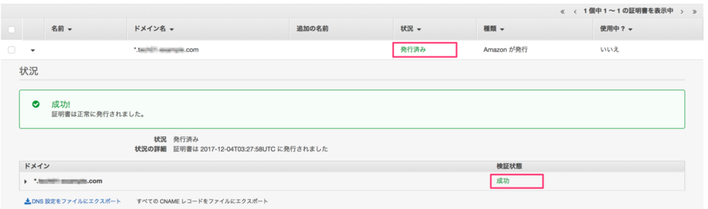 数分〜数十分すると下記のように発行済、成功 となります。