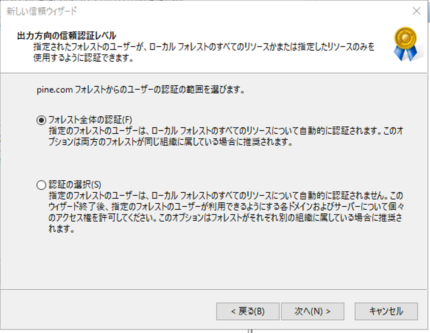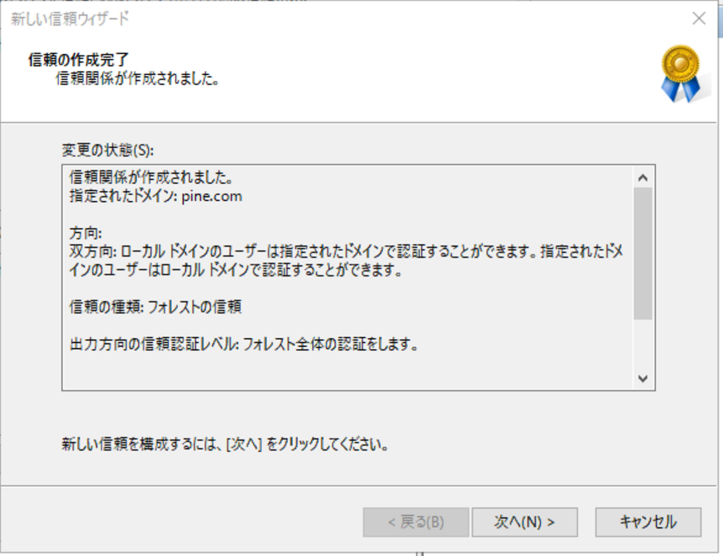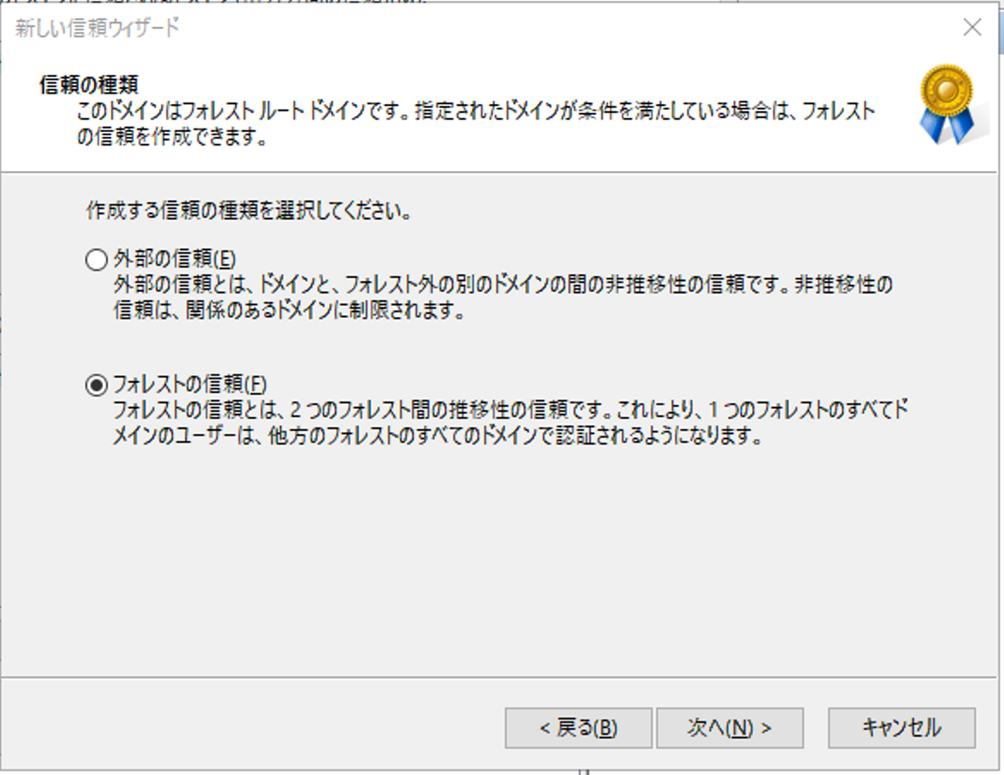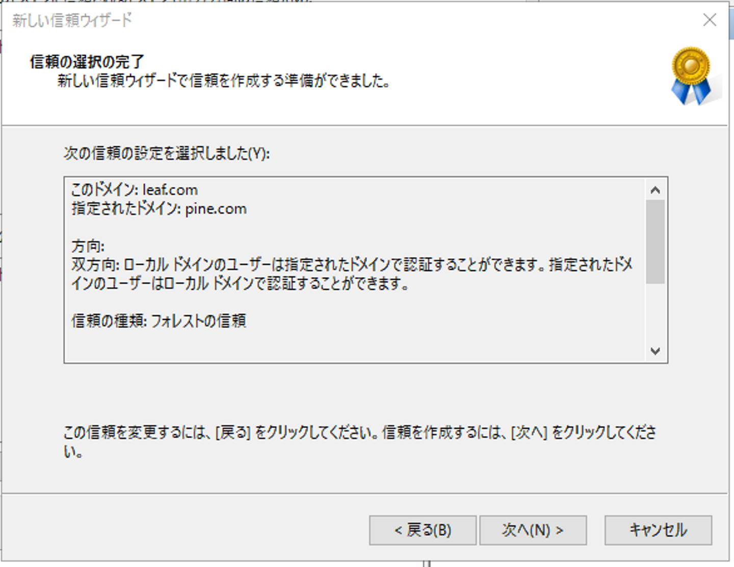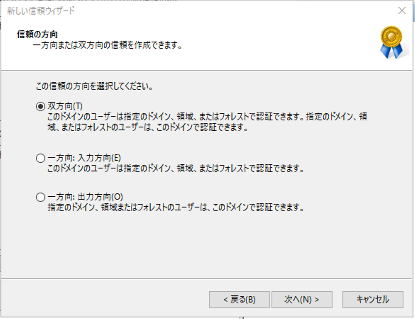 今回は、双方向の信頼関係で、子ドメインを含めた全体を信頼する関係を確立します。
