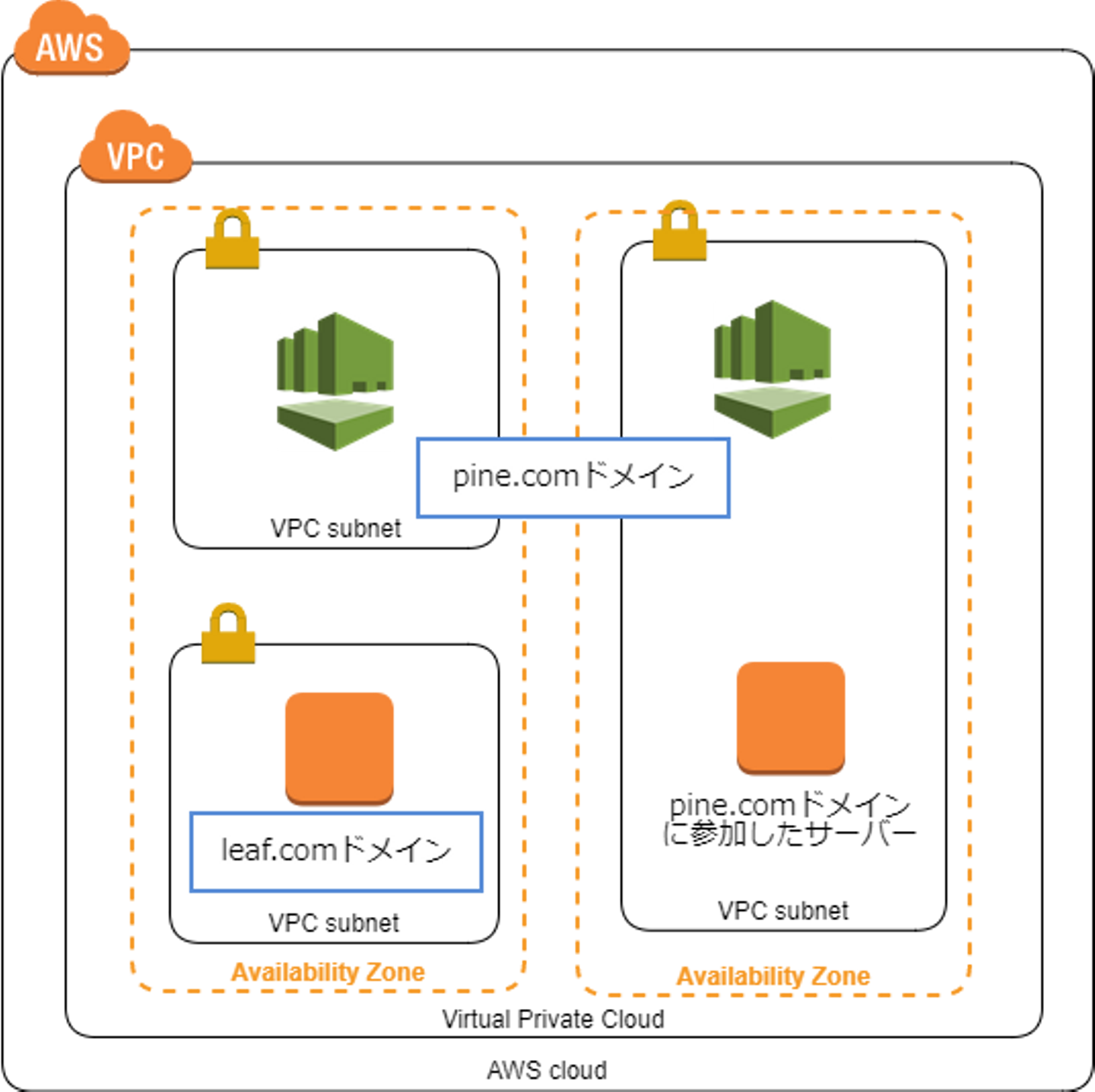 leaf.comはEC2で構築したドメインコントローラーで、pine.comはMSADで構築したドメインコントローラーを使います。