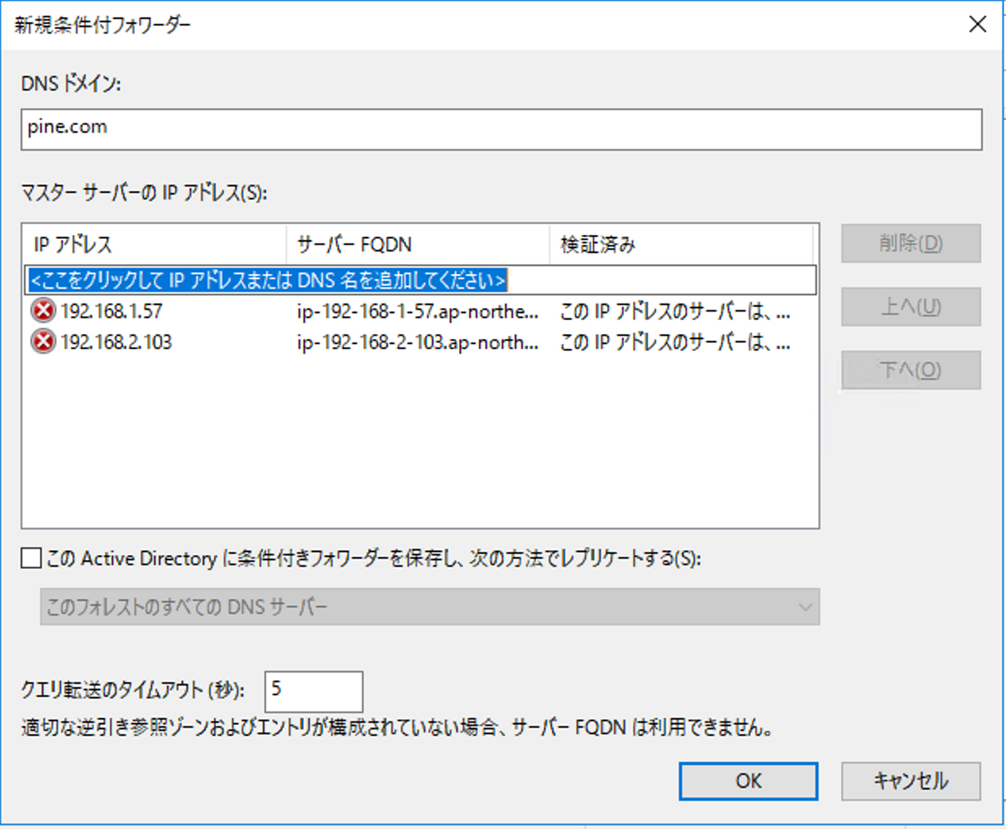 条件付きフォワーダーを設定することで、異なるドメインのドメインコントローラーの場所を探せるようになります。
