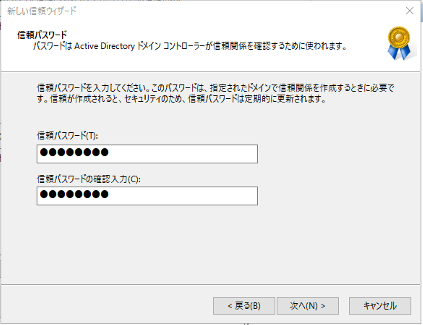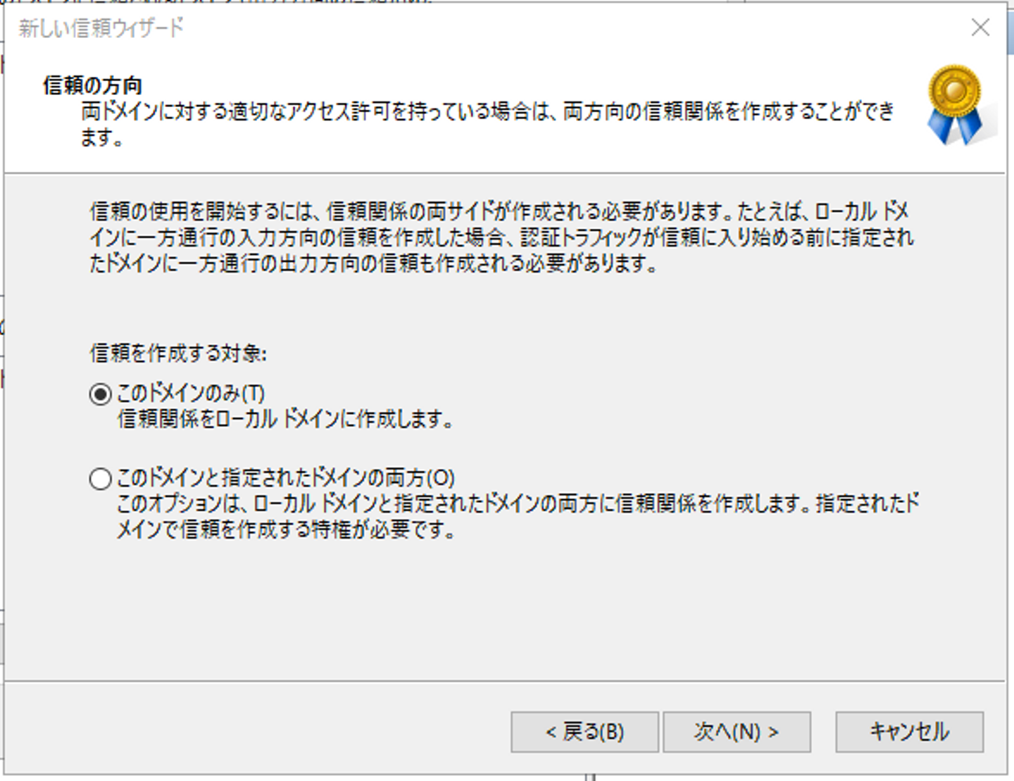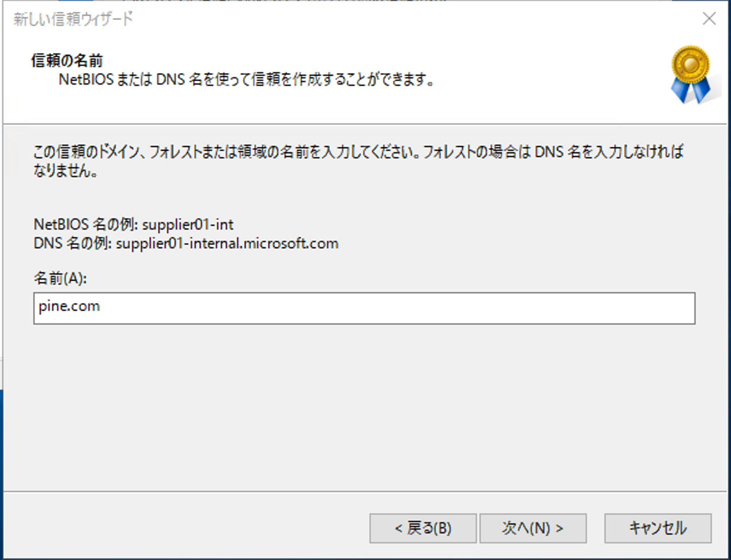 ウィザードの最初の画面は「次へ」をクリックして次に進み、信頼関係を確立したいドメイン名を入れる画面に進んでください。