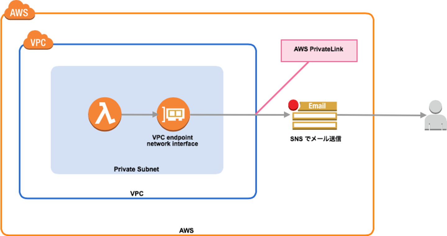 しかし、今回 PrivateLink が SNS をサポートしたことで NAT 等がなくても Lambda から SNS でメールを送信できるようになりました!