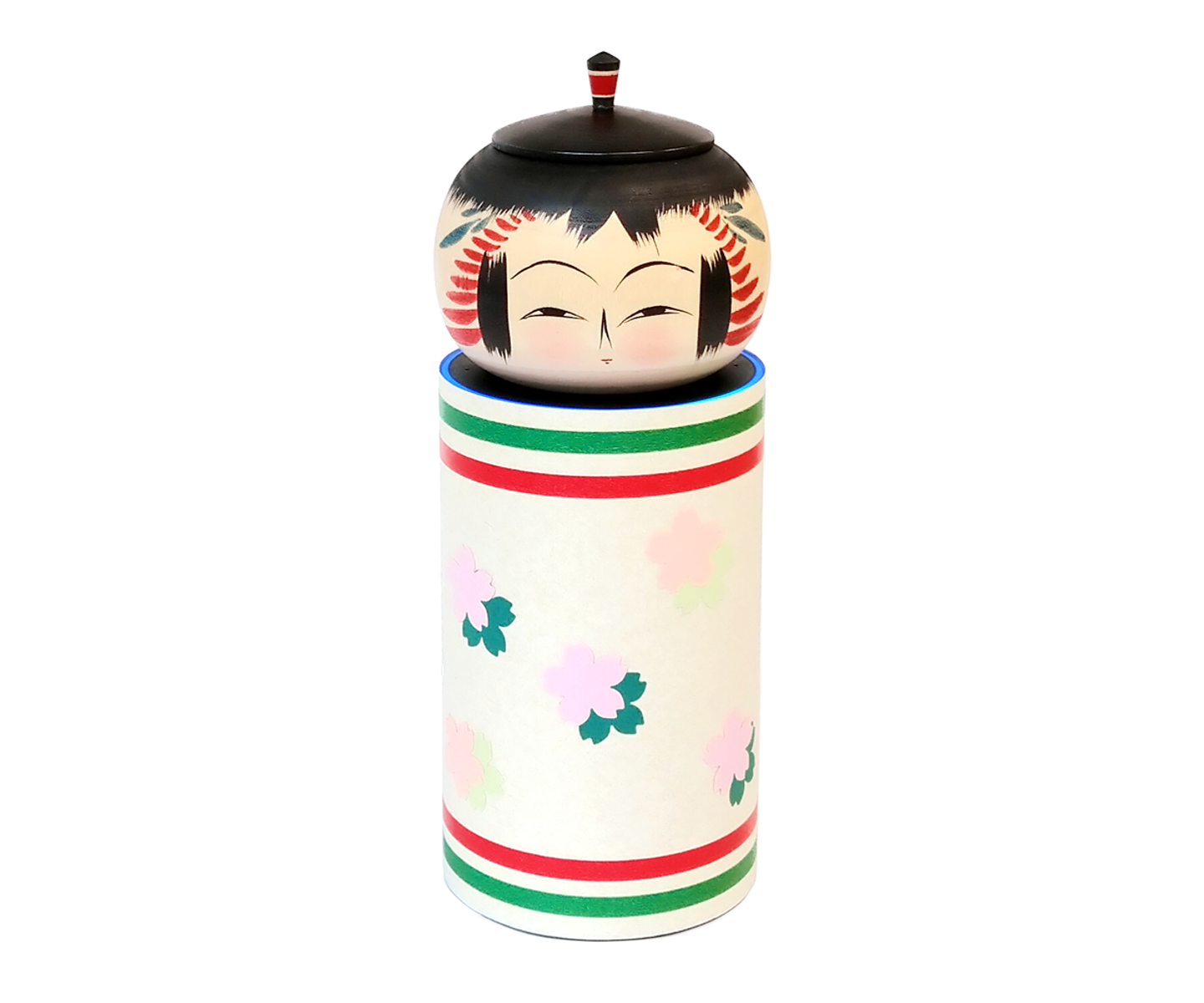 最後に、Echoにカバーを付け、こけしの小物入れを乗せた「乗せるだけkokexa」がかわいく撮れたので、載せておきますね。