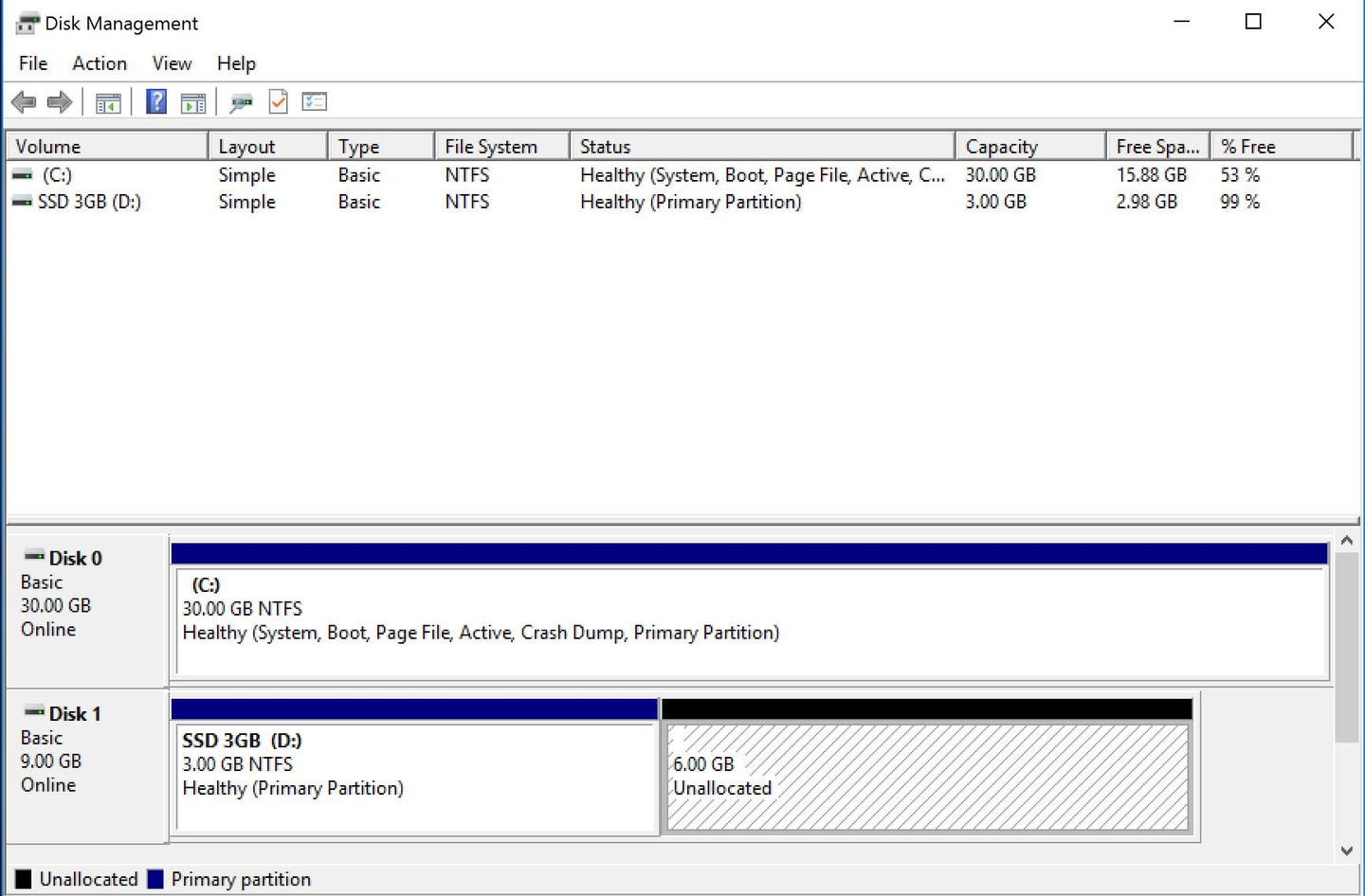 無事に拡張されたので、上図の通り6GiBの認識されていないDisk領域ができています。