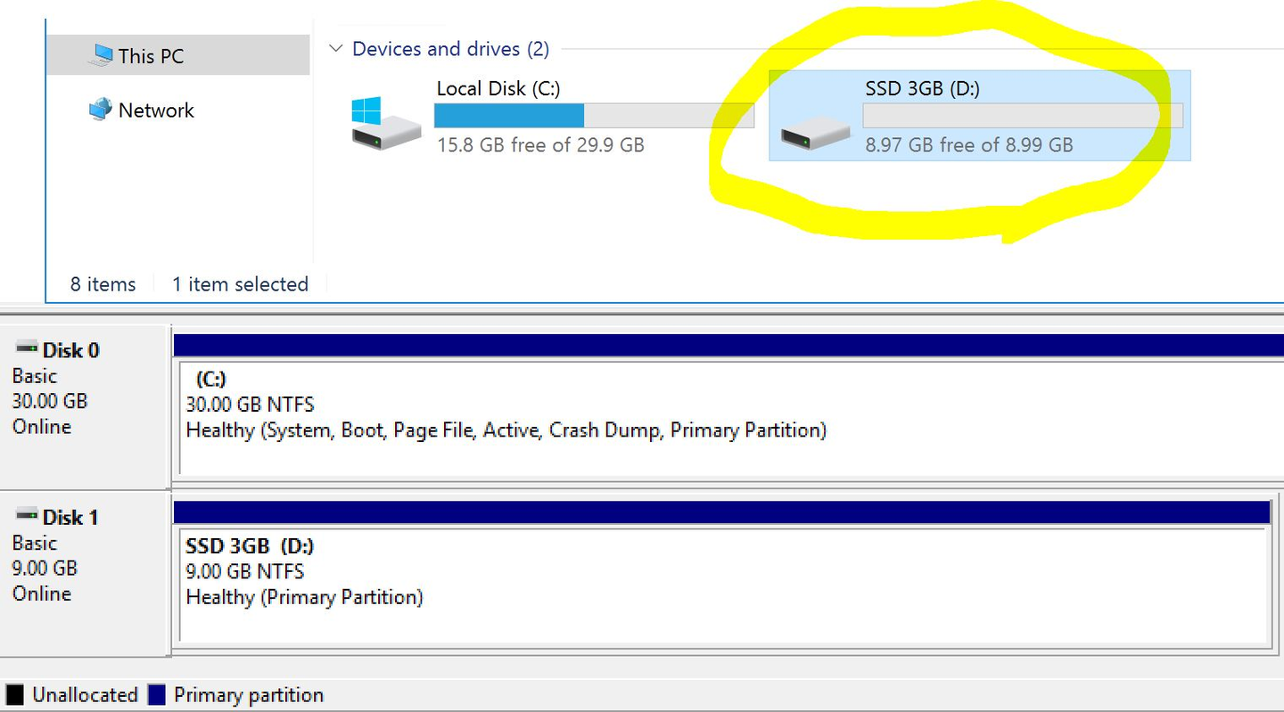 検証のためにWindows Serverを1台構築して、3GiBのgp2(SSD) VolumeをInstanceにアタッチしフォーマットしました。