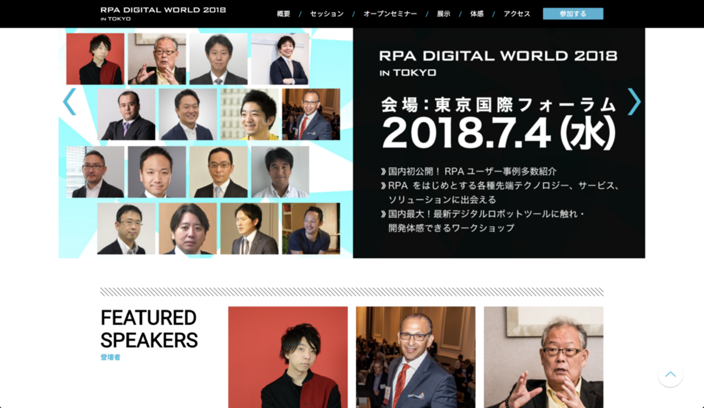 7月4日にRPAの大規模イベント「RPA DIGITAL WORLD2018」へ参加してきました。