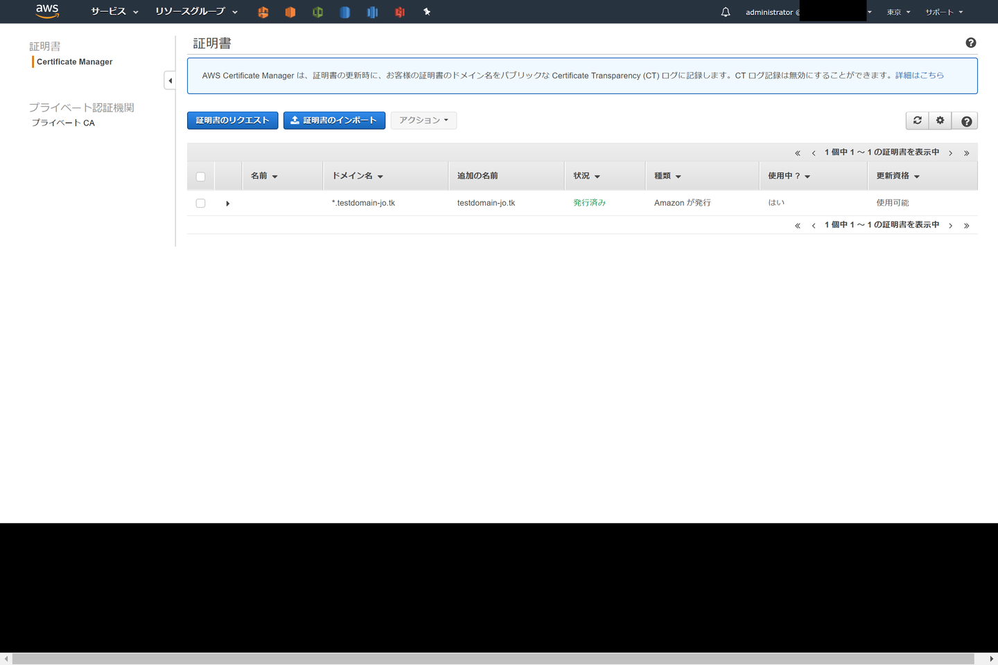 ALB認証はHTTPSリスナーのみ利用できますので、今回はACMにてワイルドカード証明書を作成しておきます。