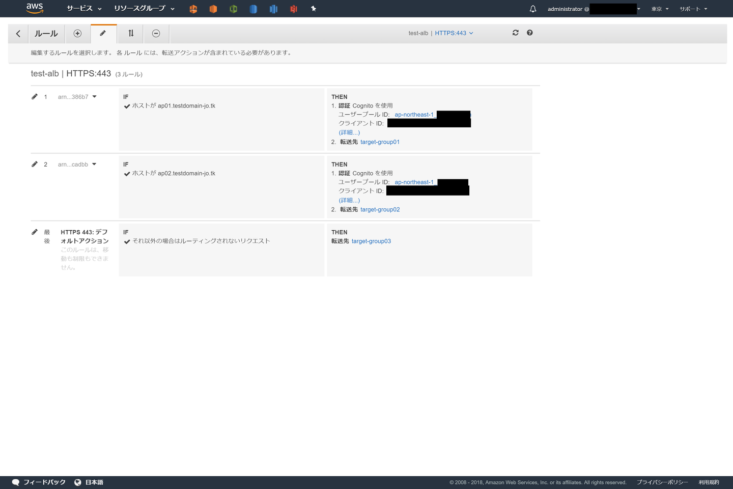 - ホストベースのルーティングにて複数システムを1つのALBに紐づけ