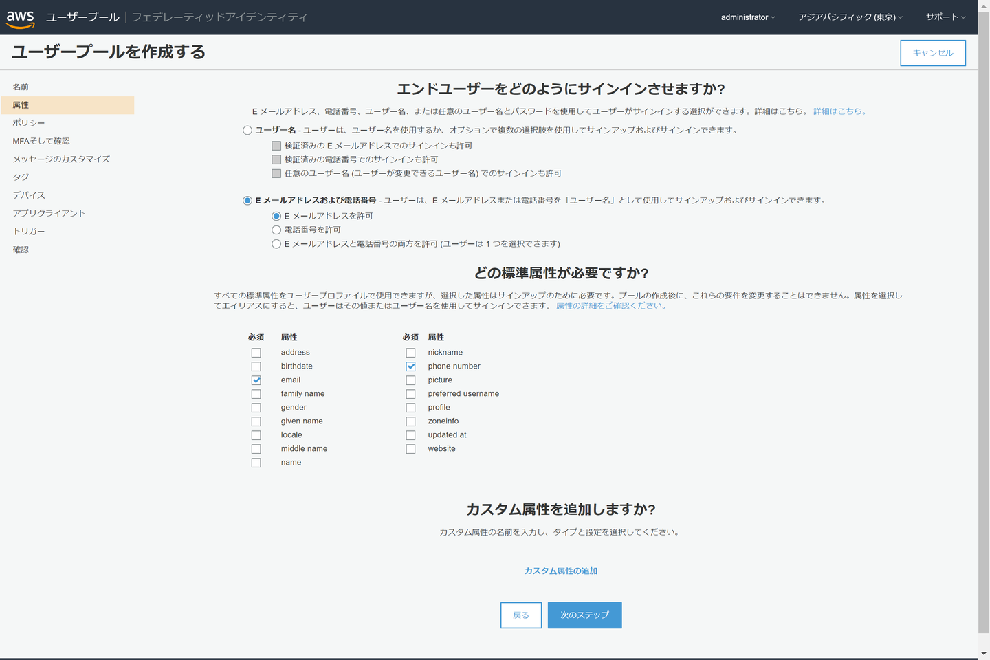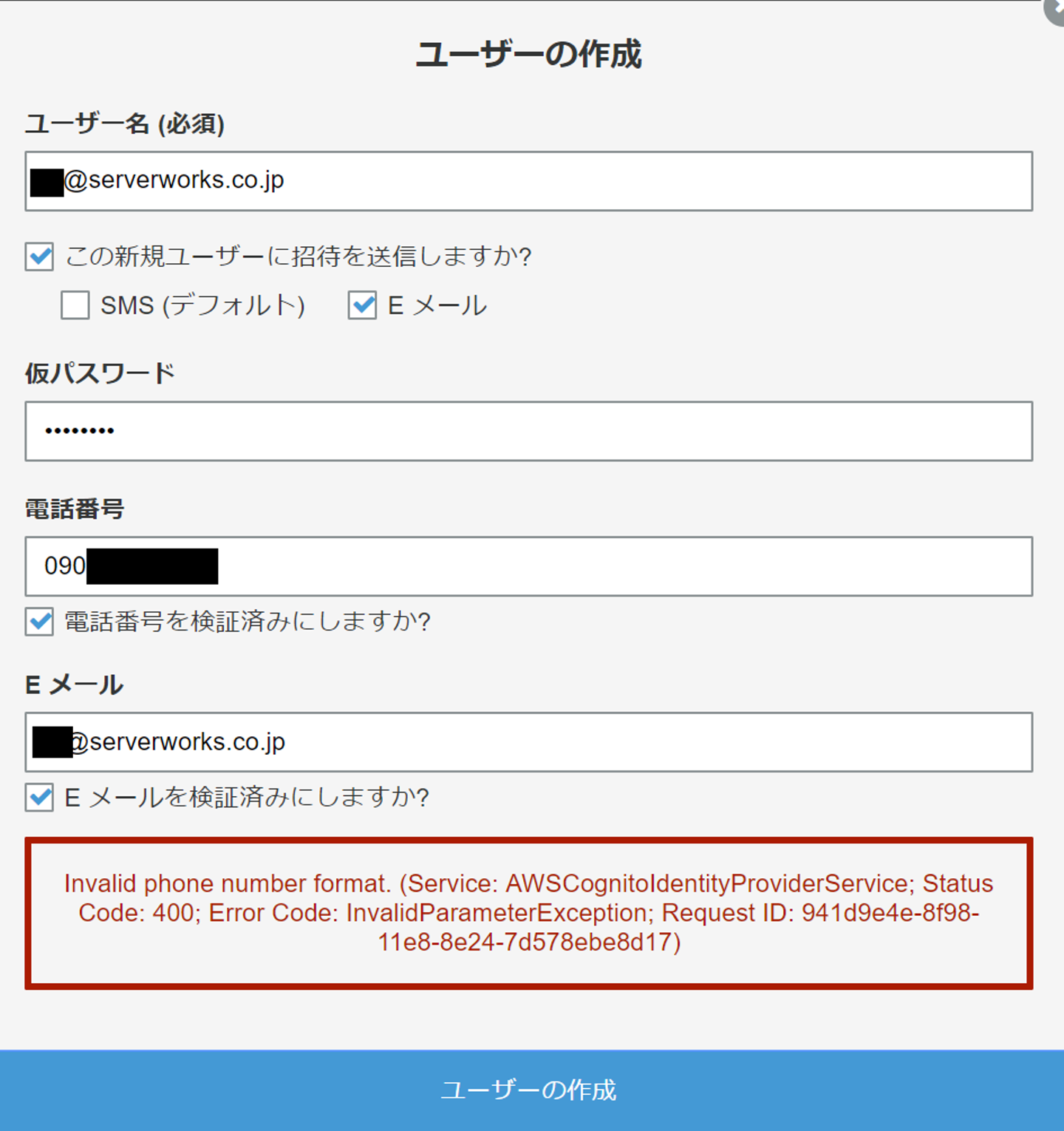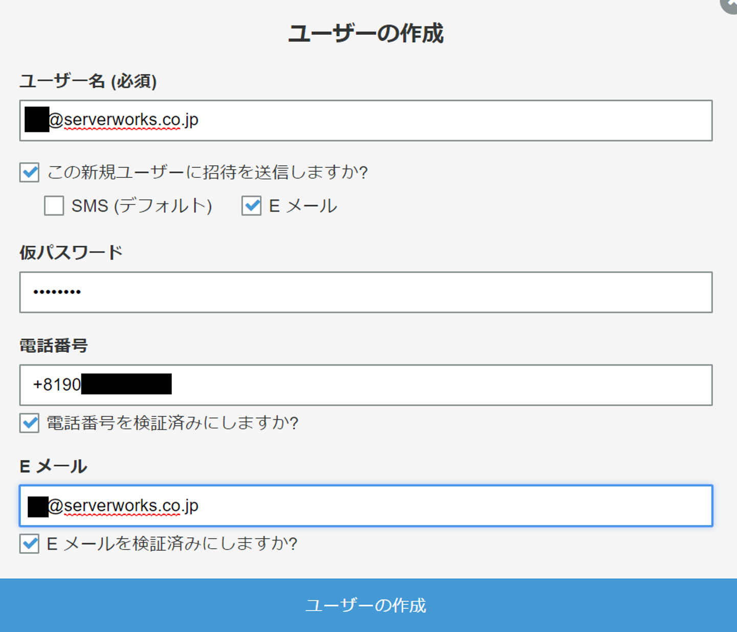 SMSでの多要素認証を利用するため、phone numberも必須としています。