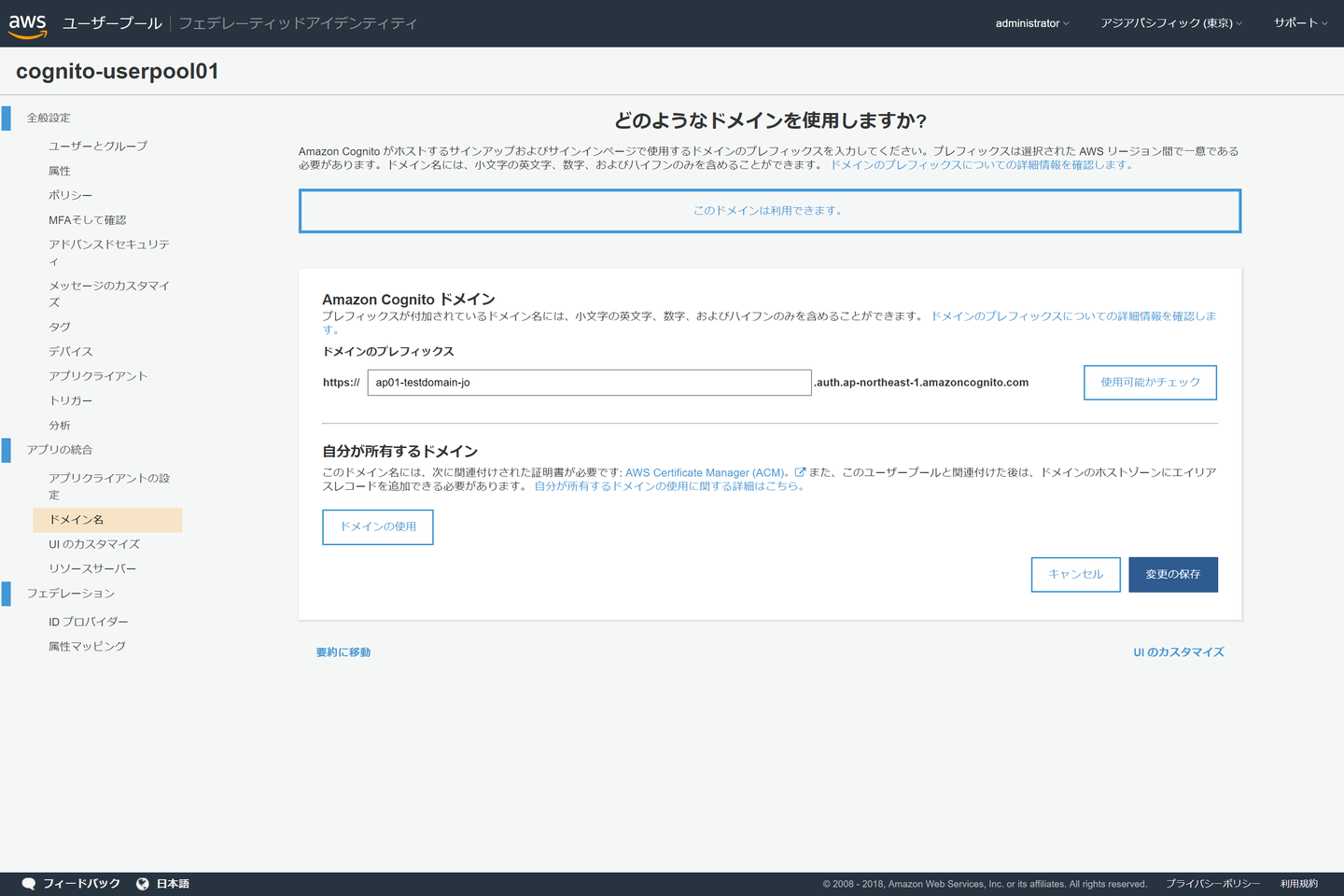 ここではAmazon Cognitoのサインインページで利用されるドメインを指定します。