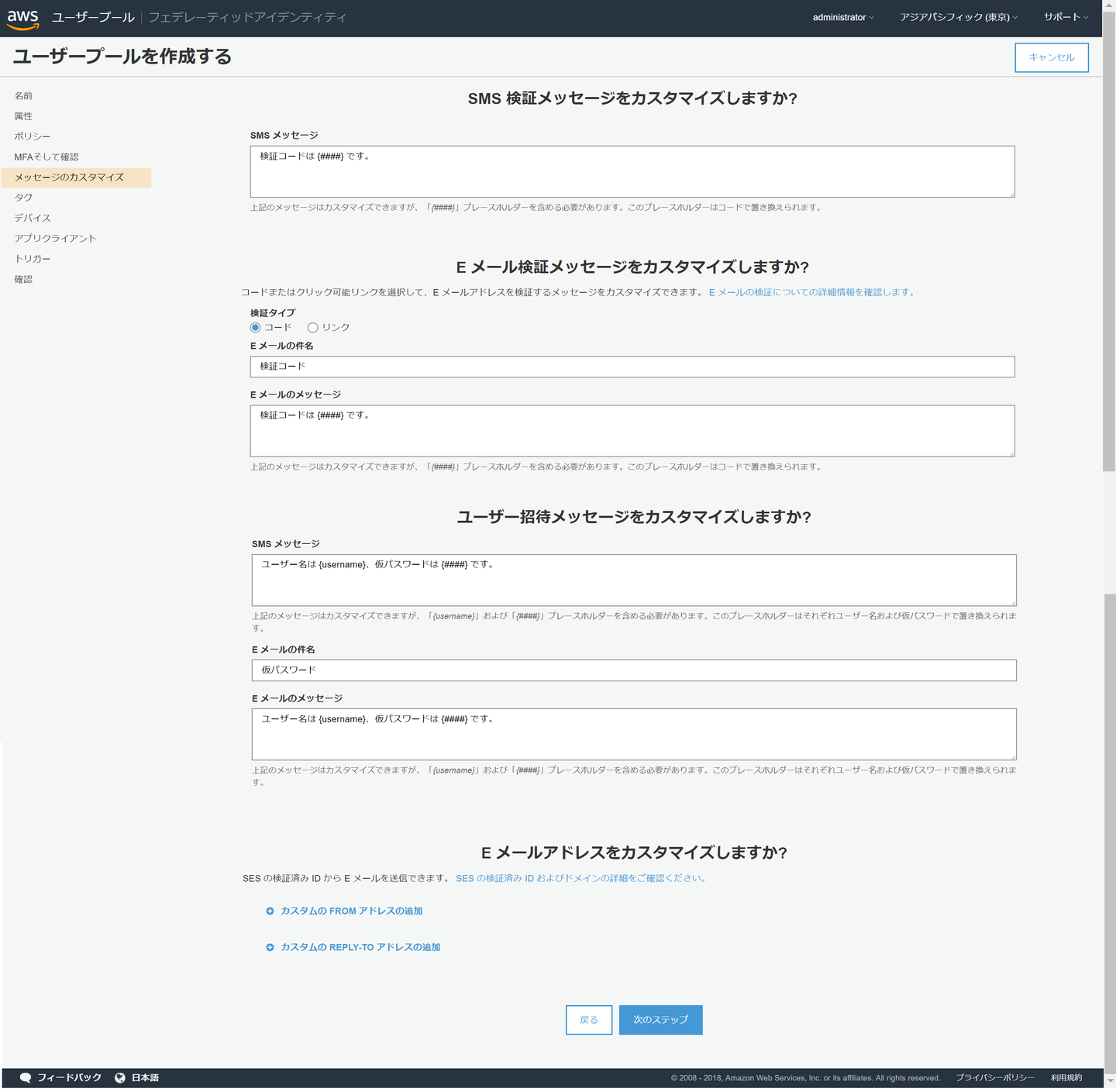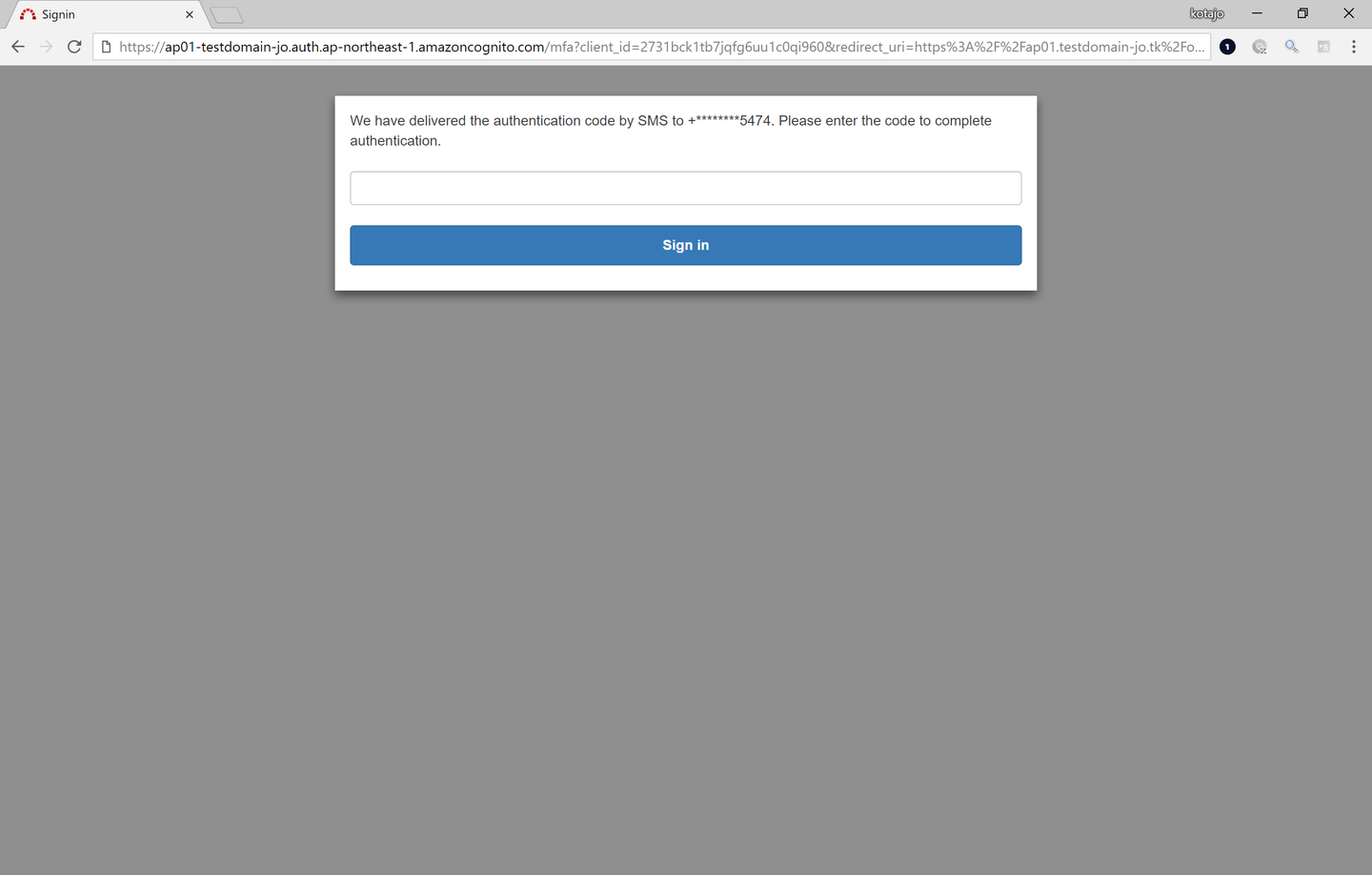 重要:ユーザーに SMSメッセージを送信して電話番号の確認やMFAを行うには、Amazon SNSに対して使用量の上限の引き上げをリクエストする必要があります。