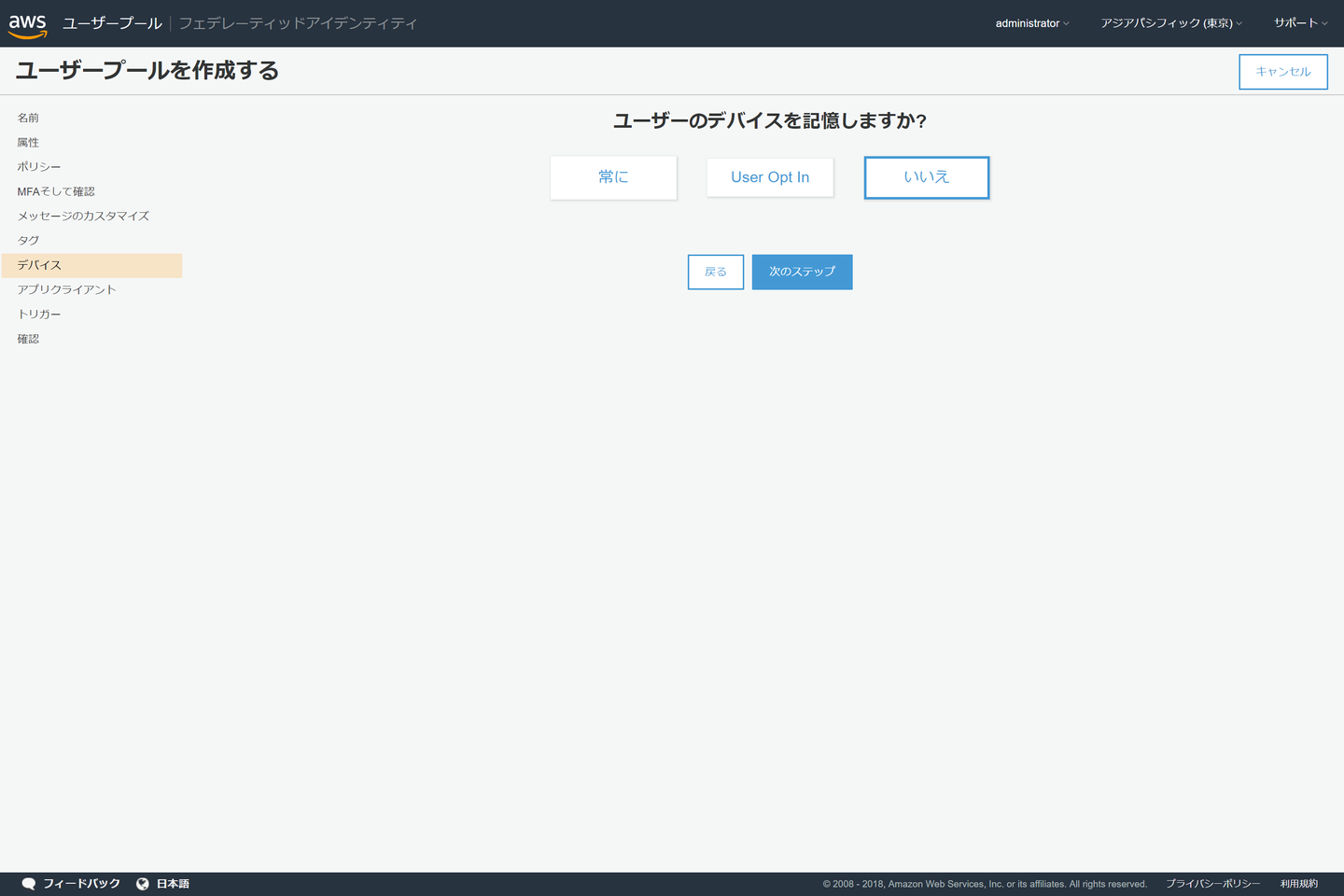https://docs.aws.amazon.com/ja_jp/cognito/latest/developerguide/amazon-cognito-user-pools-device-tracking.html