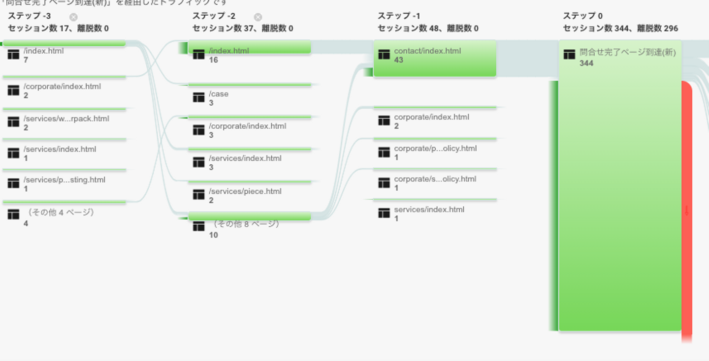マーケとしての使命はお問い合わせ完了まで訪問者を導くことなので、お問い合わせ完了ページ(お問い合わせフォームを送信した後に表示されるお礼ページ)にたどり着いた人たちの動きを見てみました。
