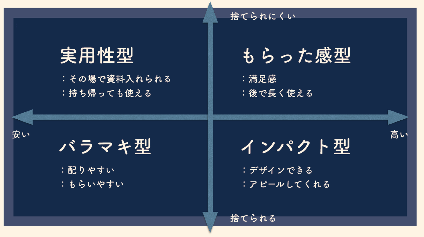 ノベルティをつくるときには旬を見つつ、以下の4つのカテゴリの