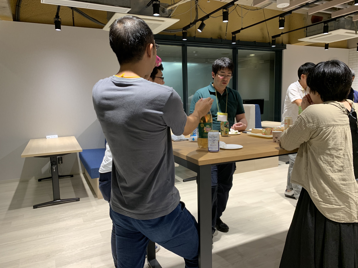 第1部が終わったら皆さんお楽しみの懇親会です!東京側はANNEXの長机の上で立ちながらの飲食でしたが、すごく会話が盛り上がって、参加したみなさまに楽しんでいただけたようです。