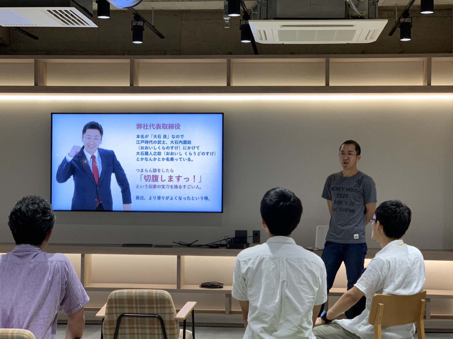 まず最初に当社の松本さんから、ご参加頂いたお礼と、みなさんに当社のことを色々知ってもらうイベントですよ!ということをお話させていただきました。