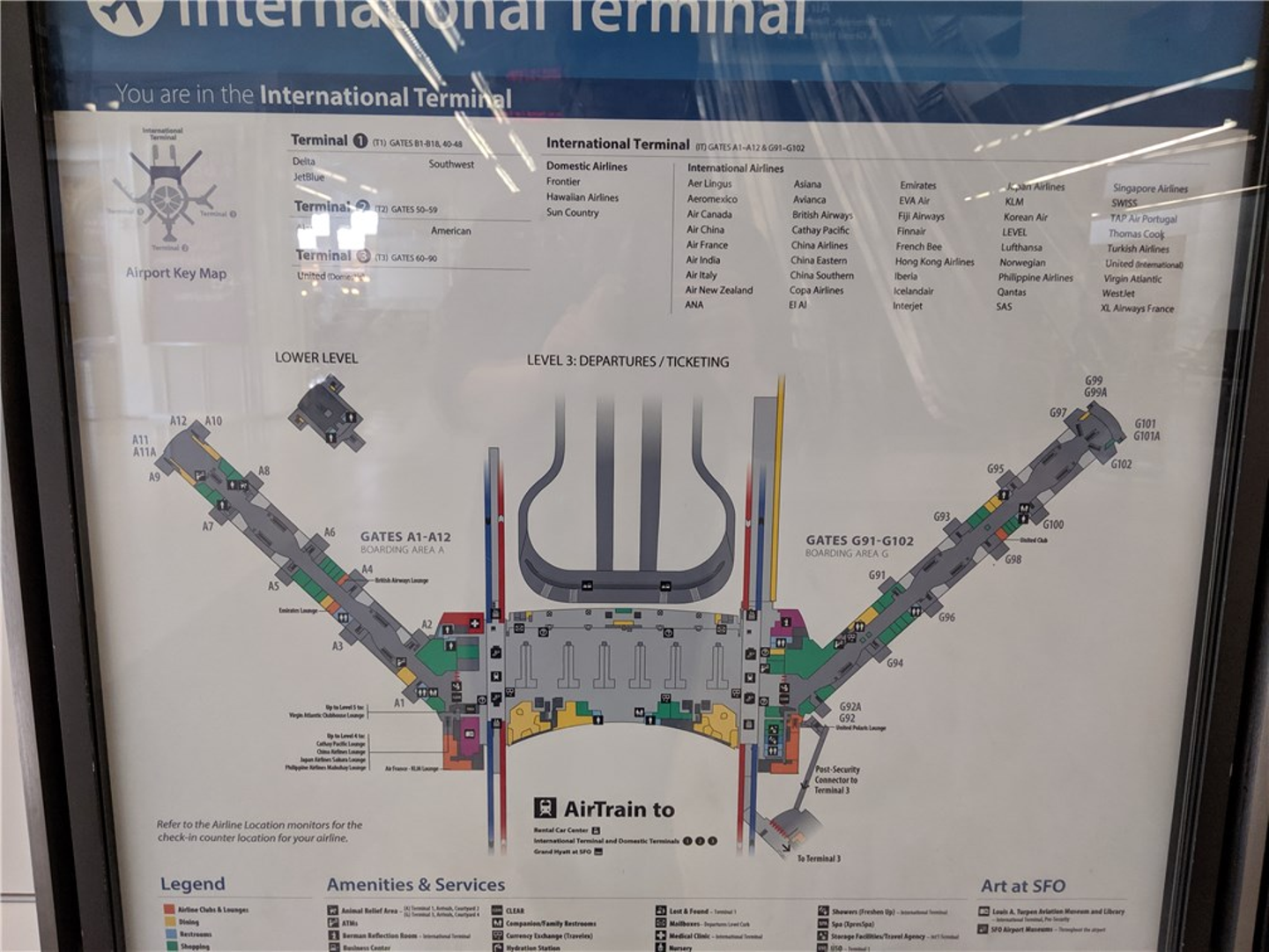 空港はこんな感じになっています。ANNはGATES G91-102方面、JALはGATES A1-A12の方みたいですね。
