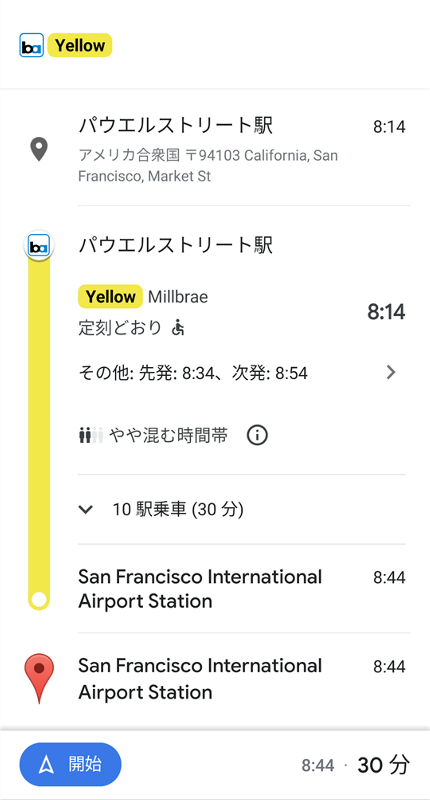帰りも、行きと同じく"bart"を使って電車で移動します。