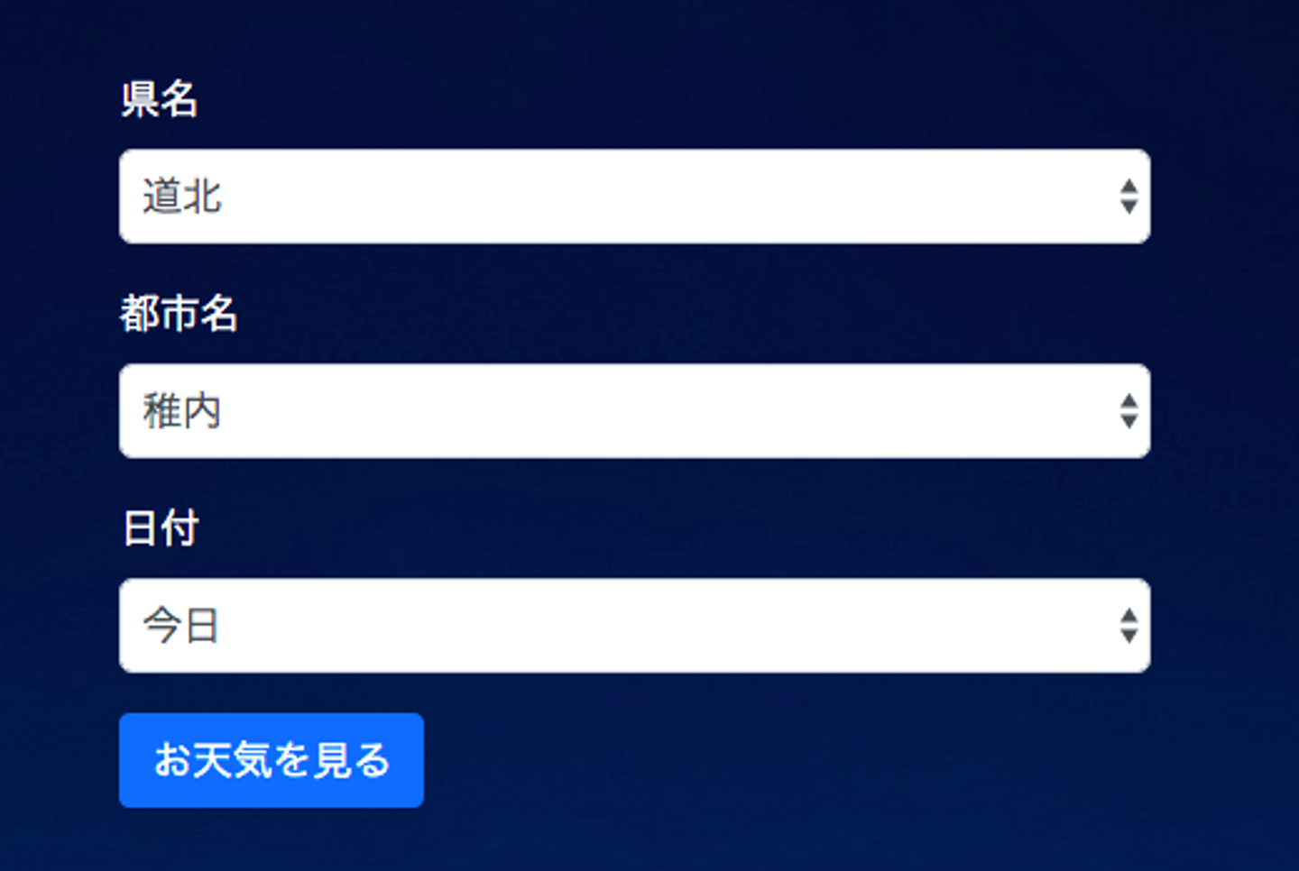 都市と県の一覧を、aws samでつくったapiから取得し、入力された県にある都市を項目として追加します。Jqueryを使わないように書いていたんですが、少しだけ使ってしまいました。外部モジュールを使うと、予期せぬエラーが発生することもあるので、あまり使いたくはなかったです。