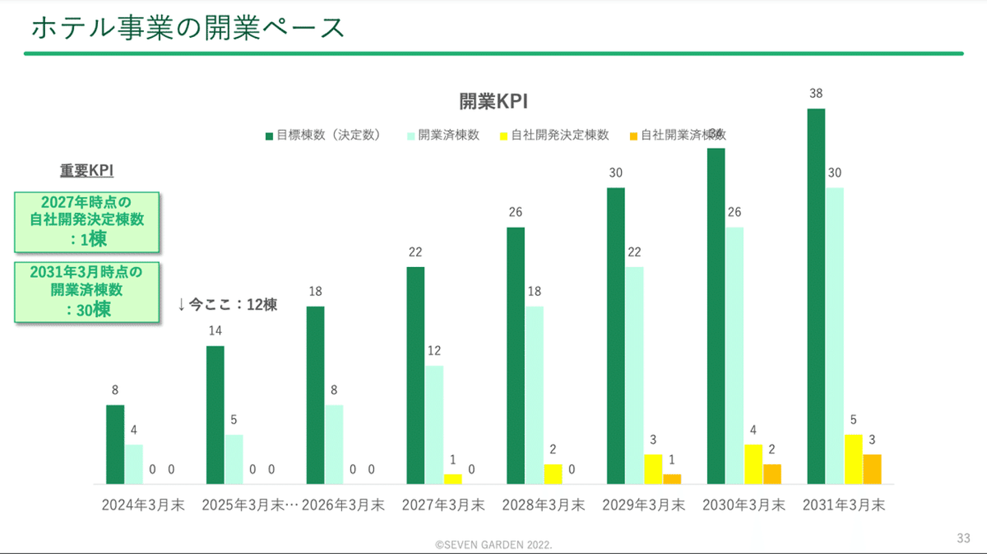 今年〜来年にかけて開業ラッシュが控えており、以降は最低でも四半期に一棟ペースで開業が続く見込みです。これは固めのKPIであり、それ以上の成長もかなり現実的です。