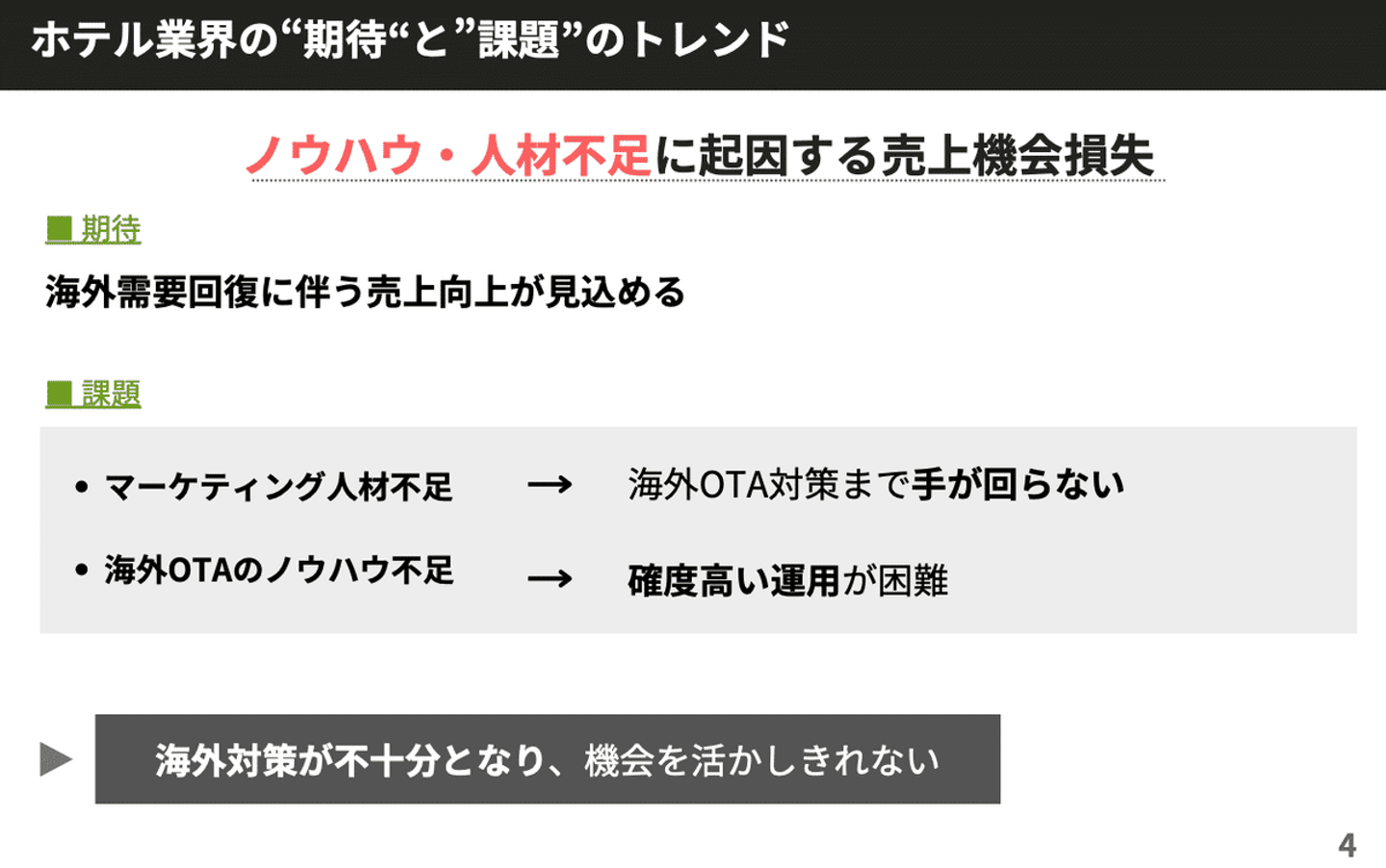 需要だけが回復してもリソースをすぐに獲得できる訳でもなくOTAを始めとした集客チャネルが最適化されていないケースが散見されました。