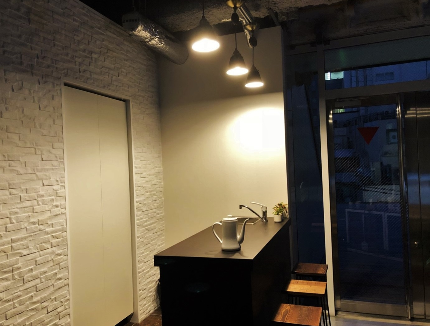 カウンターキッチンも設置。作業に疲れたらコーヒーを飲んでもよし、椅子に座ってぼぉーっとしてもよし。小さな癒しエリアです。
