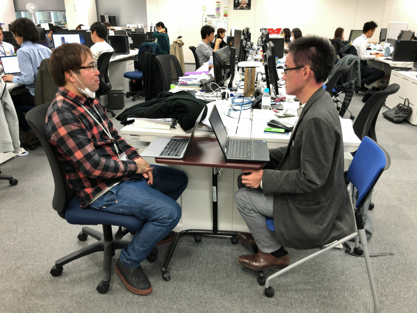 こちらでは首痛くなりそうな姿勢でミーティングしていますね。
