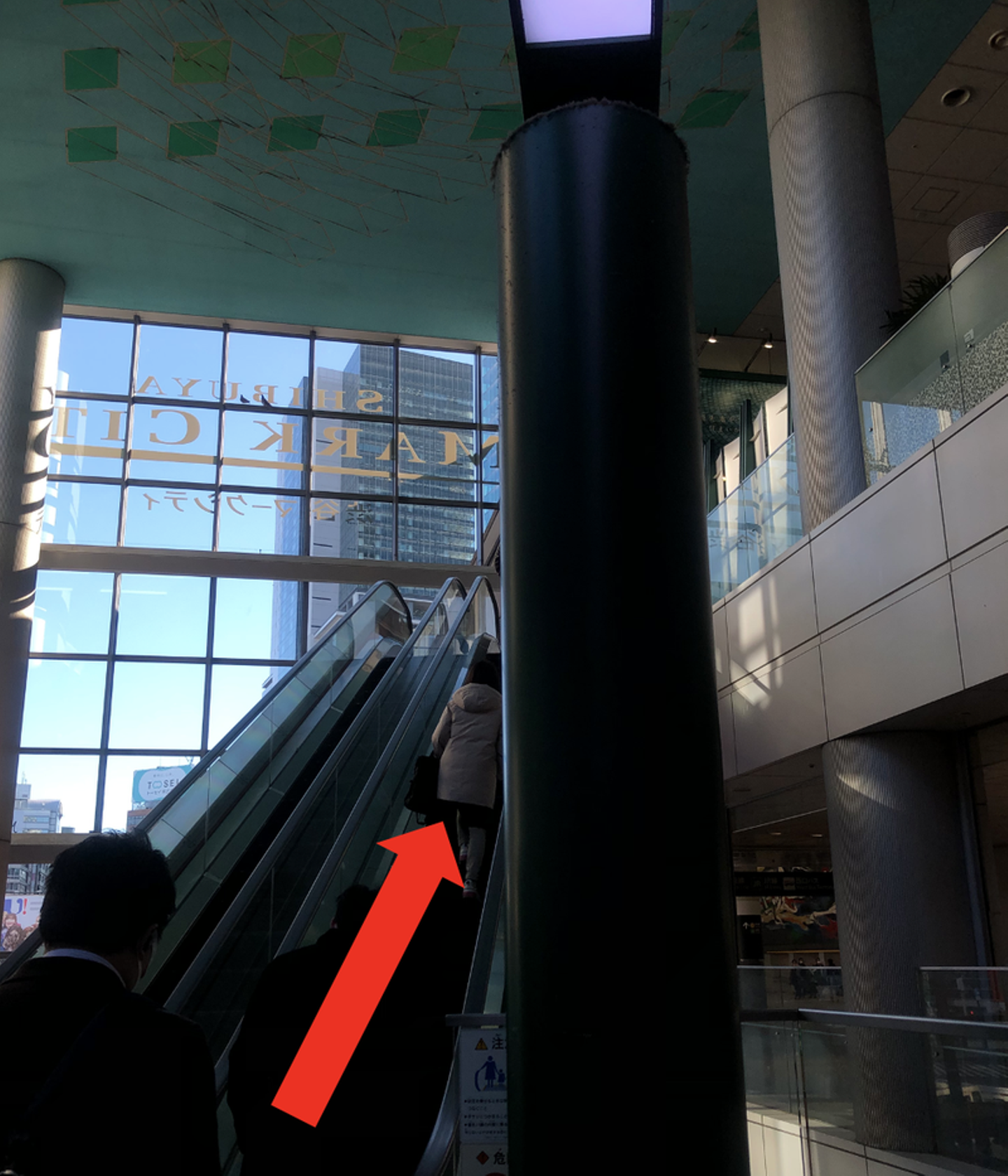 右に曲がりもう一回エスカレーターにお乗りください。