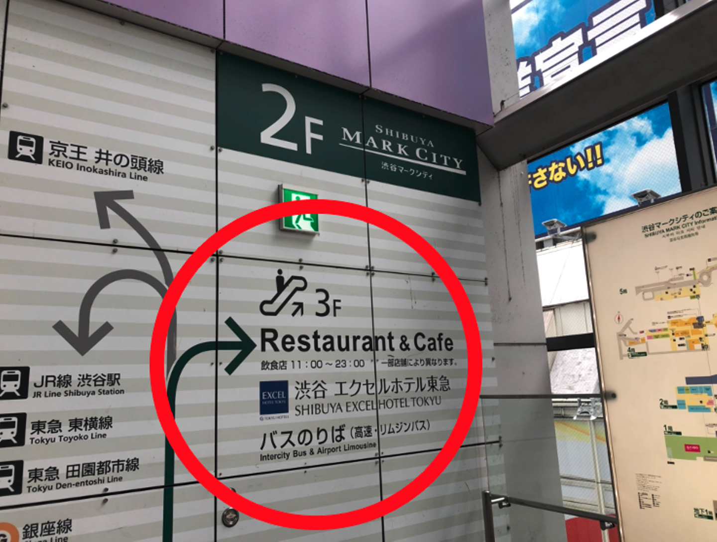 銀座線/半蔵門線/副都心線をご利用する方は出口A5に出ていただき、右側のマークシティへのエスカレーターにお乗りください。