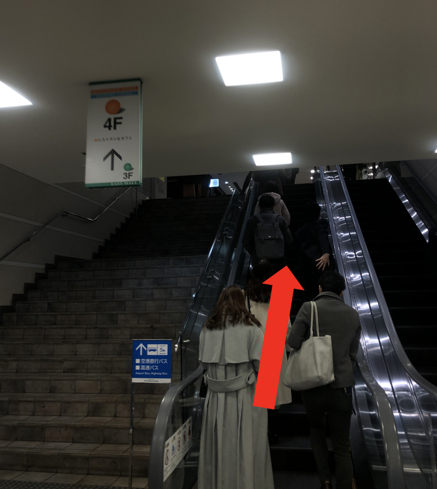4F行きのエスカレーターが出ます。エスカレーターにお乗りください。