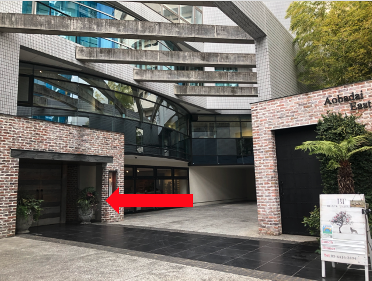突き当たりに見えるレンガ調の建物が弊社オフィスが入っている青葉台イーストビルです!