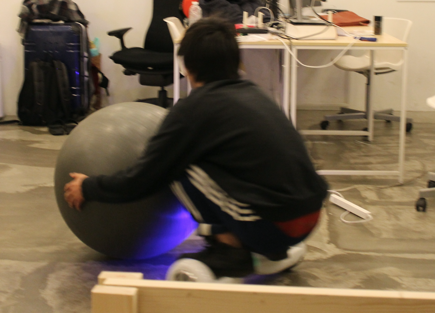 セグウェイに乗りながら、バランスボールを押して遊ぶメンバーも。