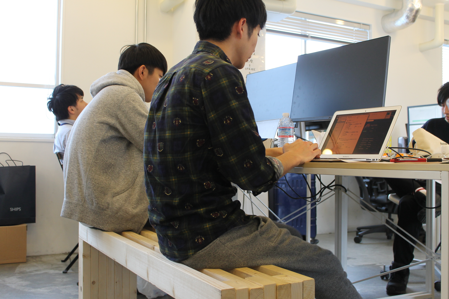 なぜかオフィス内に持ち込まれたベンチも。