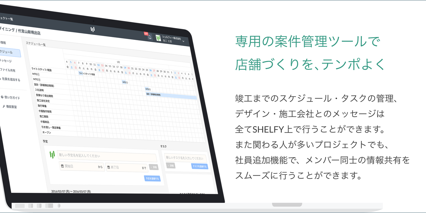 シェルフィーが対象とする内装業界では、まだまだFAXや電話が主流であり、コミュニケーションミスによるトラブルが日々発生しています。そこでシェルフィーでは内装工事に関わるクライアントと施工会社が情報共有やスケジュール確認、ファイルのやりとりなどをスムーズに行うためのプロダクトをつくっています。